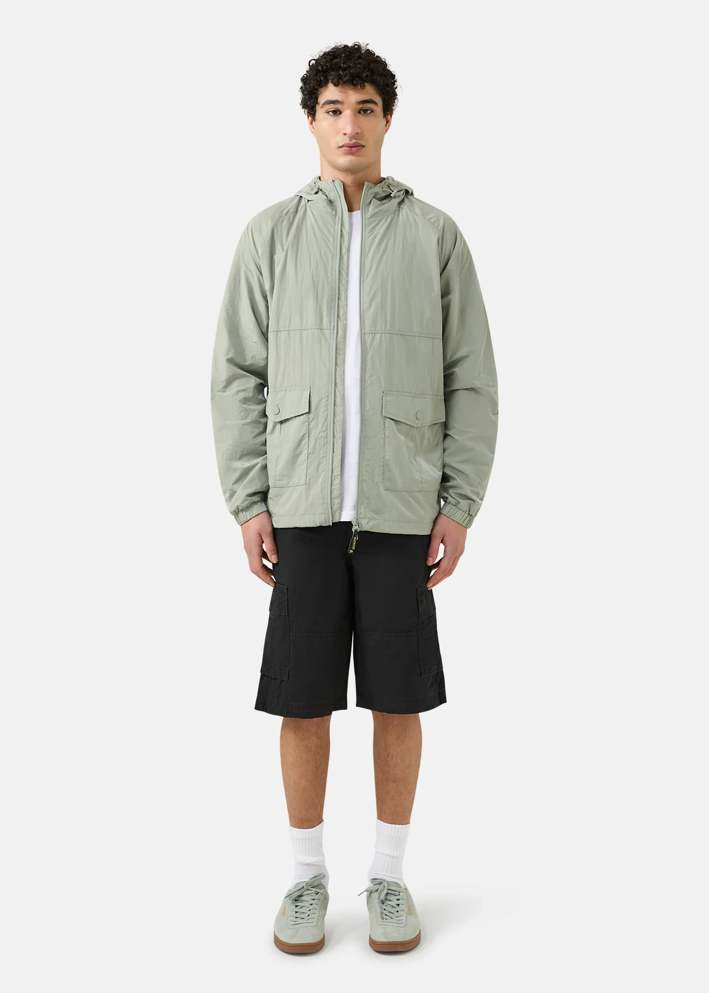 The Chapman Jacket, updated for SS26. Lightweight weather protection. Constructed from a polyamide parachute-style fabric with shower-proof qualities and raglan sleeves. This hooded jacket includes elasticated cuffs for a secure fit and clean, functional detailing.